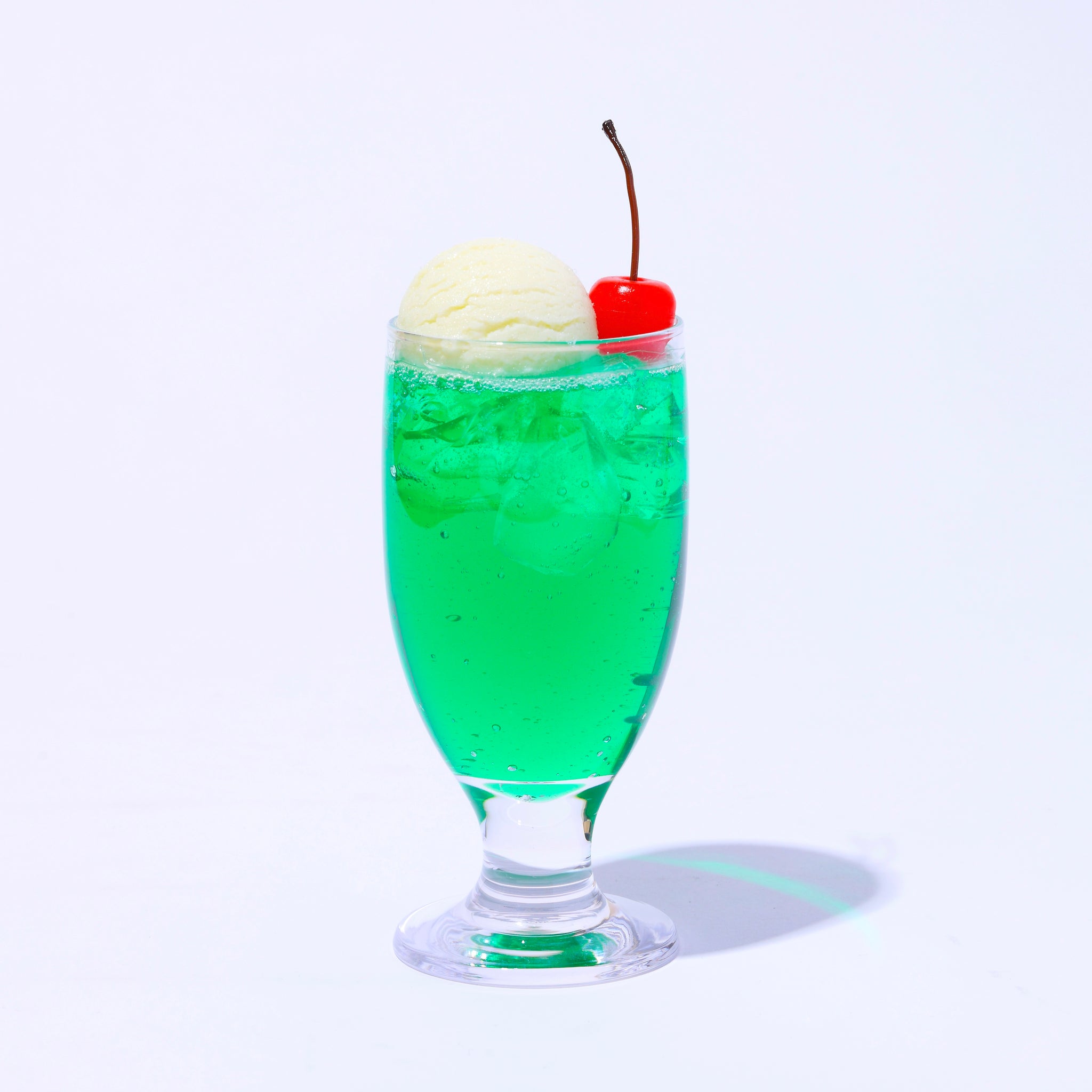 昭和のレトロ喫茶の定番メニューと言えば、やっぱり「クリームソーダ」。そんなクリームソーダの食品サンプルです。透き通るエメラルドグリーンのソーダに、バニラアイスと真っ赤なチェリーをトッピング。リアルで美しい仕上がりは、インテリアや撮影用小物としてはもちろん、レトロ好きの方へのギフトにもおすすめです。