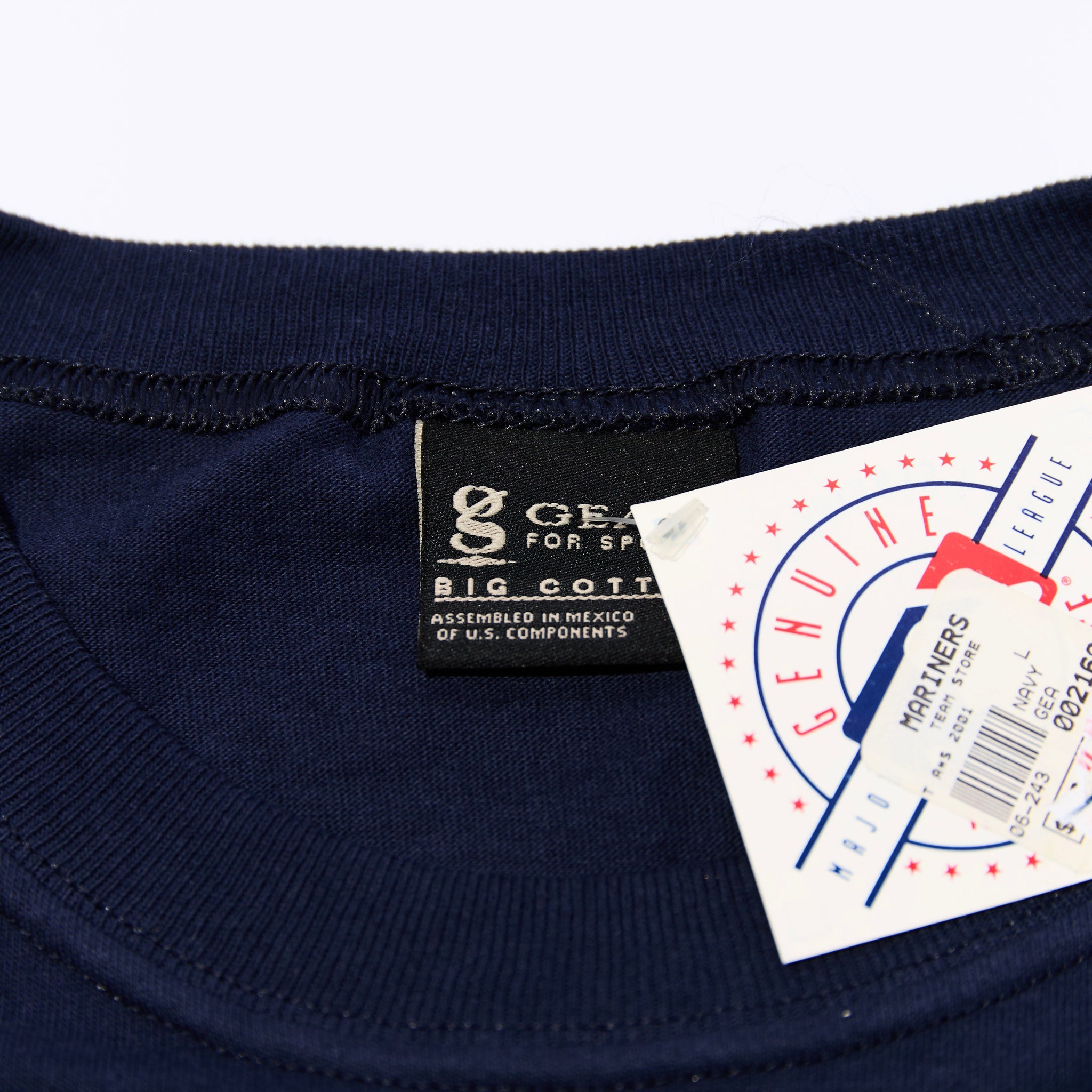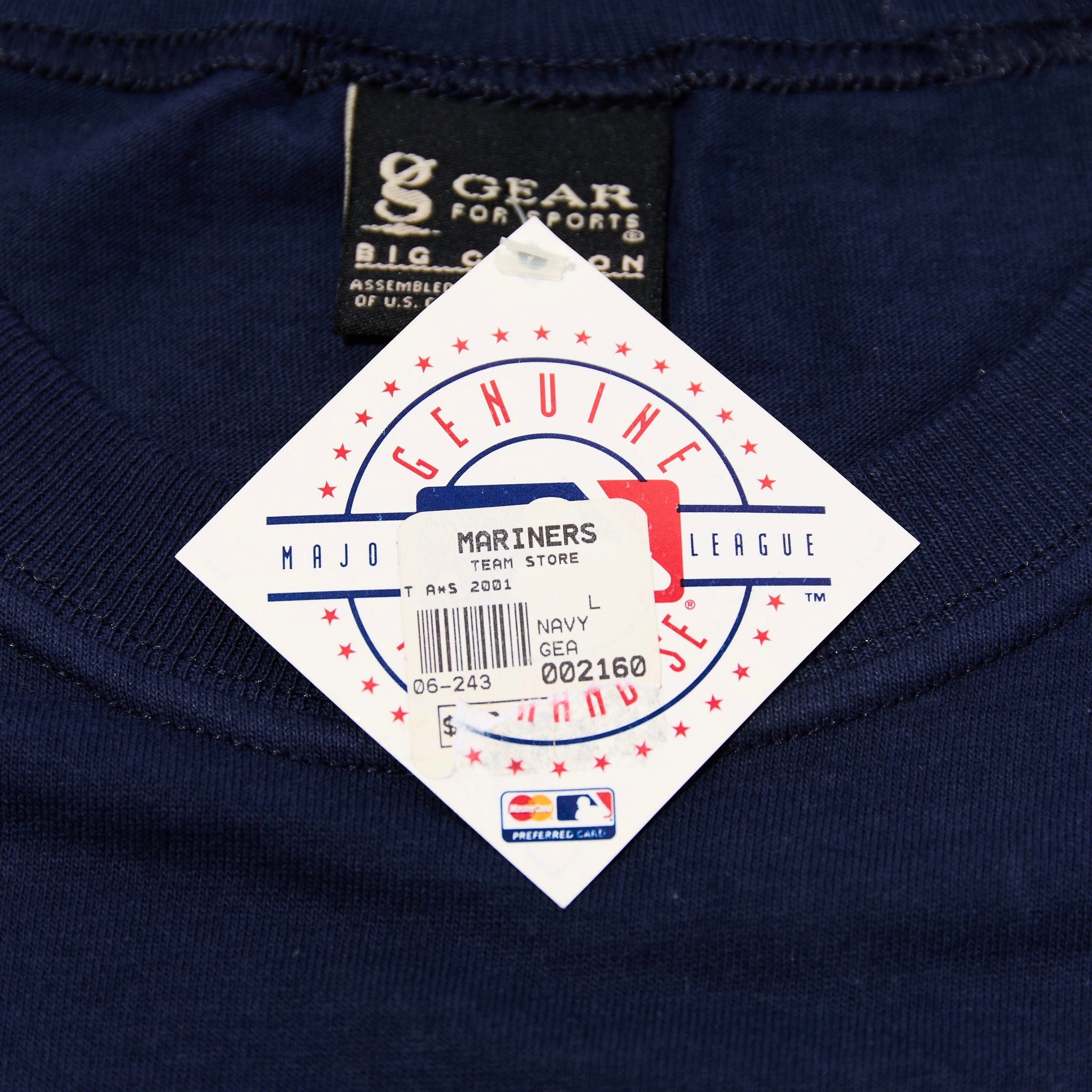 2001年7月、シアトル・マリナーズの本拠地「セーフコ・フィールド」で開催されたMLBオールスターゲームのオフィシャルTシャツ。フロントには当時のオフィシャルロゴが大きくプリント。ネイビーのボディに、鮮やかなグリーンとシルバーのカラーリングが映えるマリナーズらしい配色。ボディはアメリカの「GEAR FOR SPORTS」。タグ付き未使用のコレクターズアイテムです。