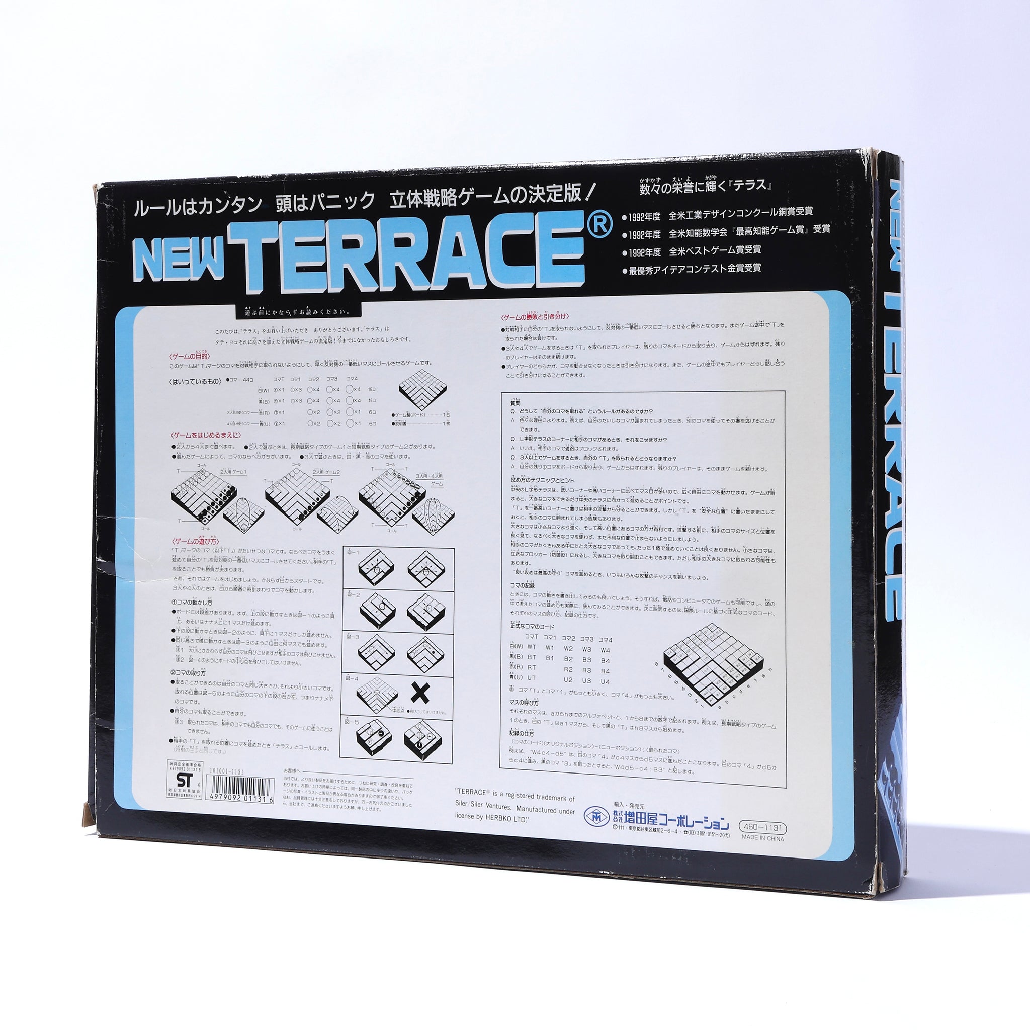 1980年代に、アメリカのゲームデザイナー、Julian Sternerによって考案された戦略ボードゲーム『TERRACE』。本作は、日本の老舗玩具メーカー「MASUDAYA」がライセンスを取得し、'90年代初めに『NEW TERRACE』として販売。近未来感ある造形美、モノトーンカラーの立体的な盤面と駒がアートピースのような存在感。棚やテーブルの上にディスプレイするだけで絵になる一品です。