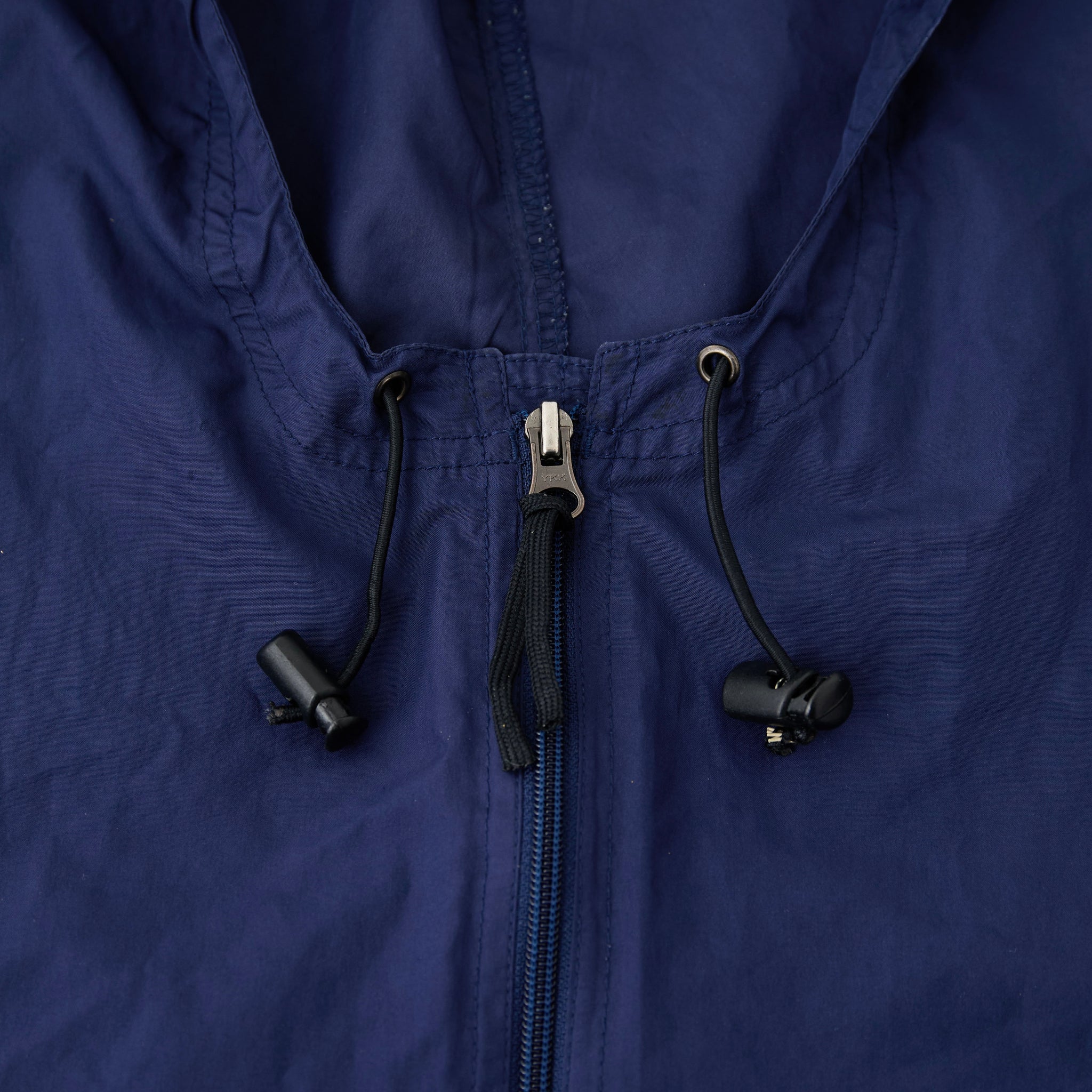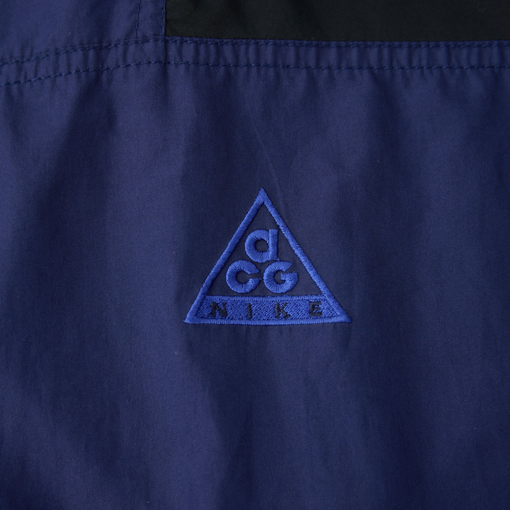NIKE ACGのアノラックジャケット。ネイビーとブルーの切替にブラックラインを効かせた、存在感抜群のデザインで。軽量で耐久性のあるポリエステル素材を使用し、アウトドアからタウンユースまで幅広く活躍。胸元の三角ロゴ刺繍やハーフジップ、カンガルーポケット、裾のドローコードなど、ACGならではの機能美が光る一着。XLサイズ、ビッグシルエットもポイントです。