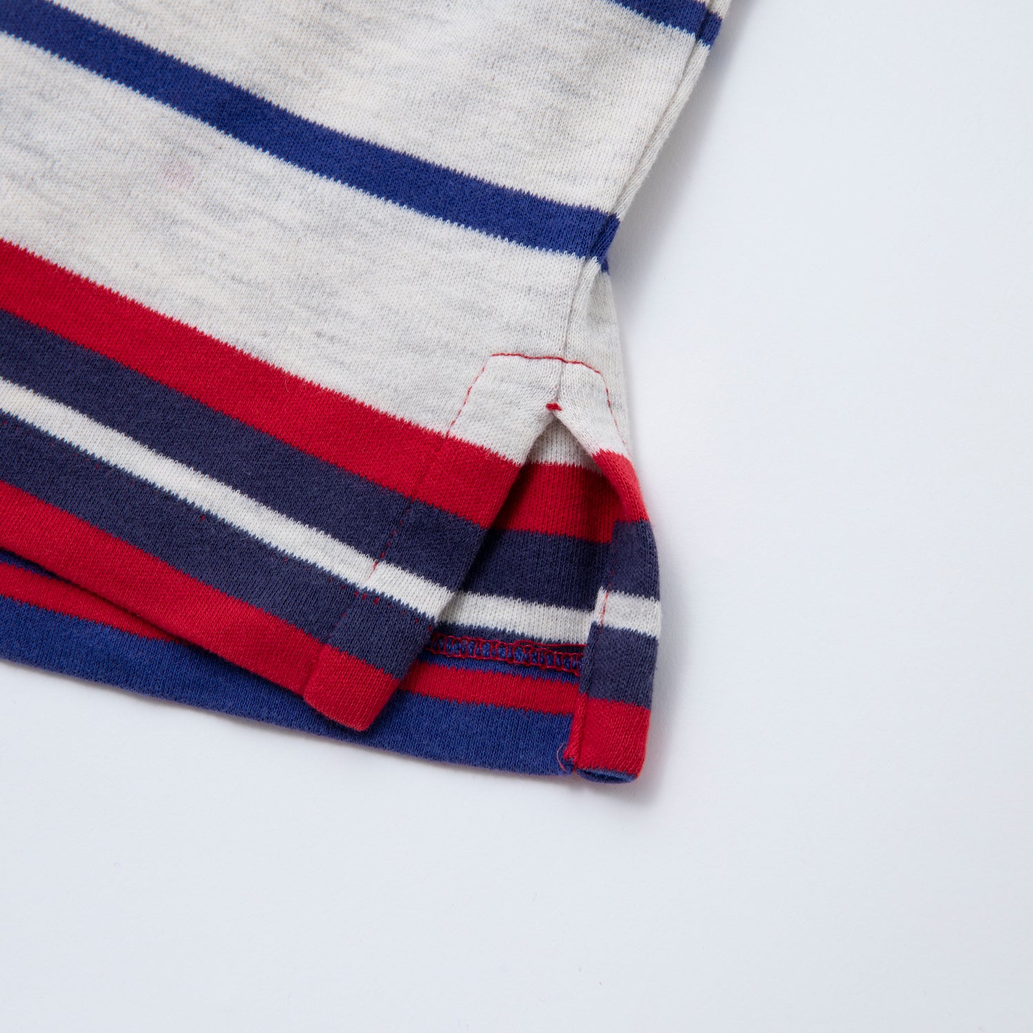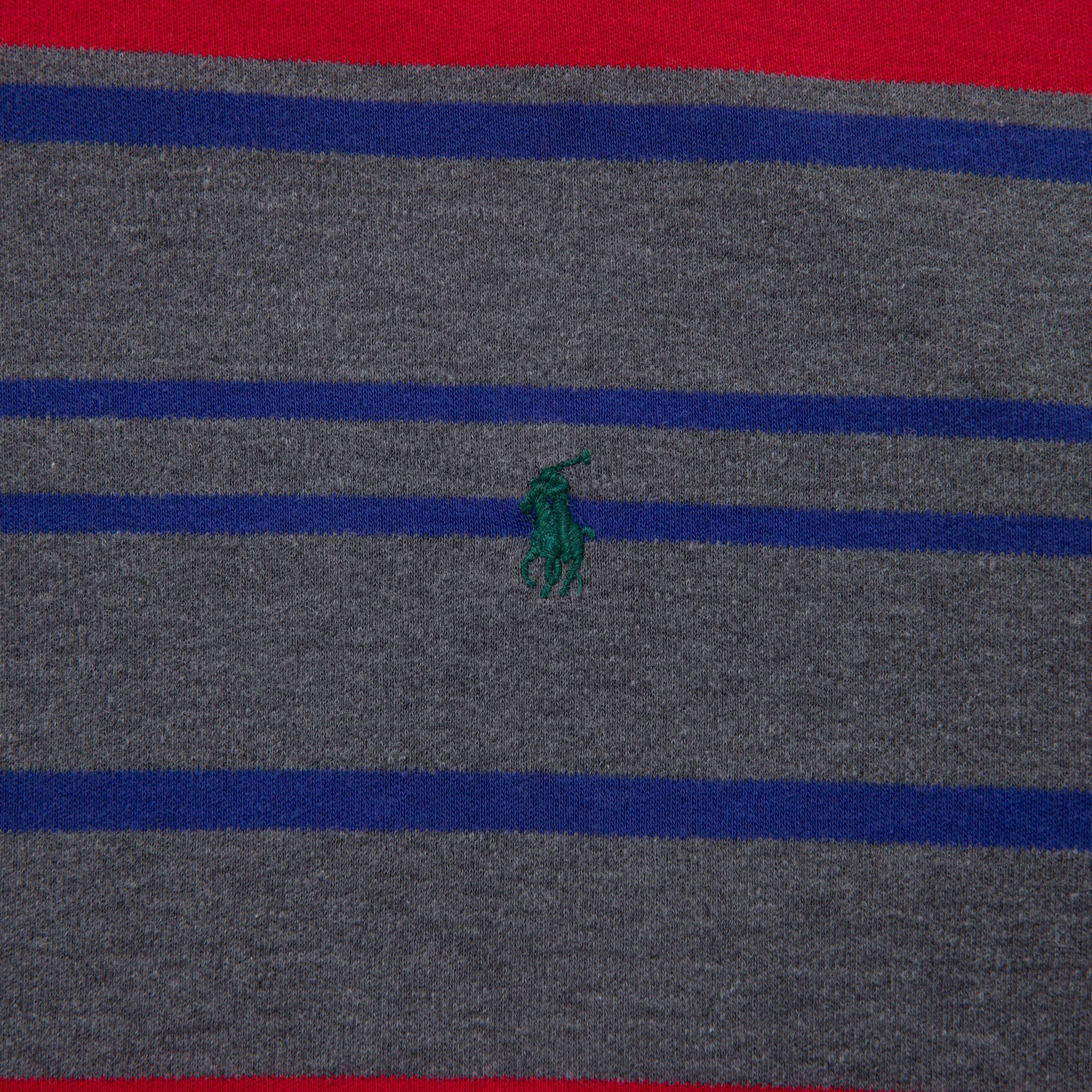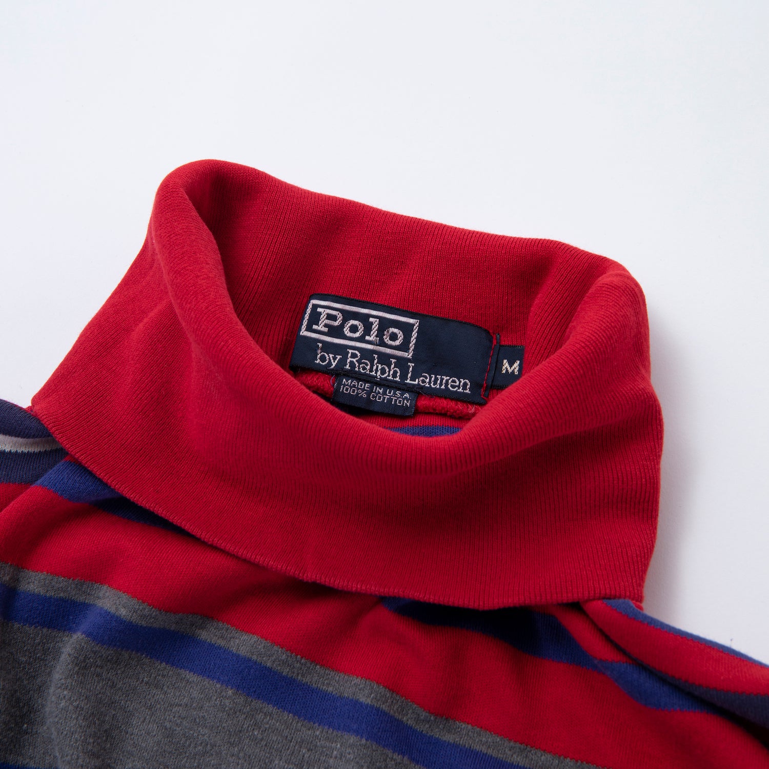 90年代初期〜中期頃にリリースされた「Polo by Ralph Lauren」のヴィンテージタートルネック。レッド・グレー・ネイビー・ホワイトを基調としたマルチボーダーデザインが特徴で、胸元にはポニー刺繍入り。コットン100%のしっかりとした生地感で、アメリカ製(Made in U.S.A.)の希少な一着です。