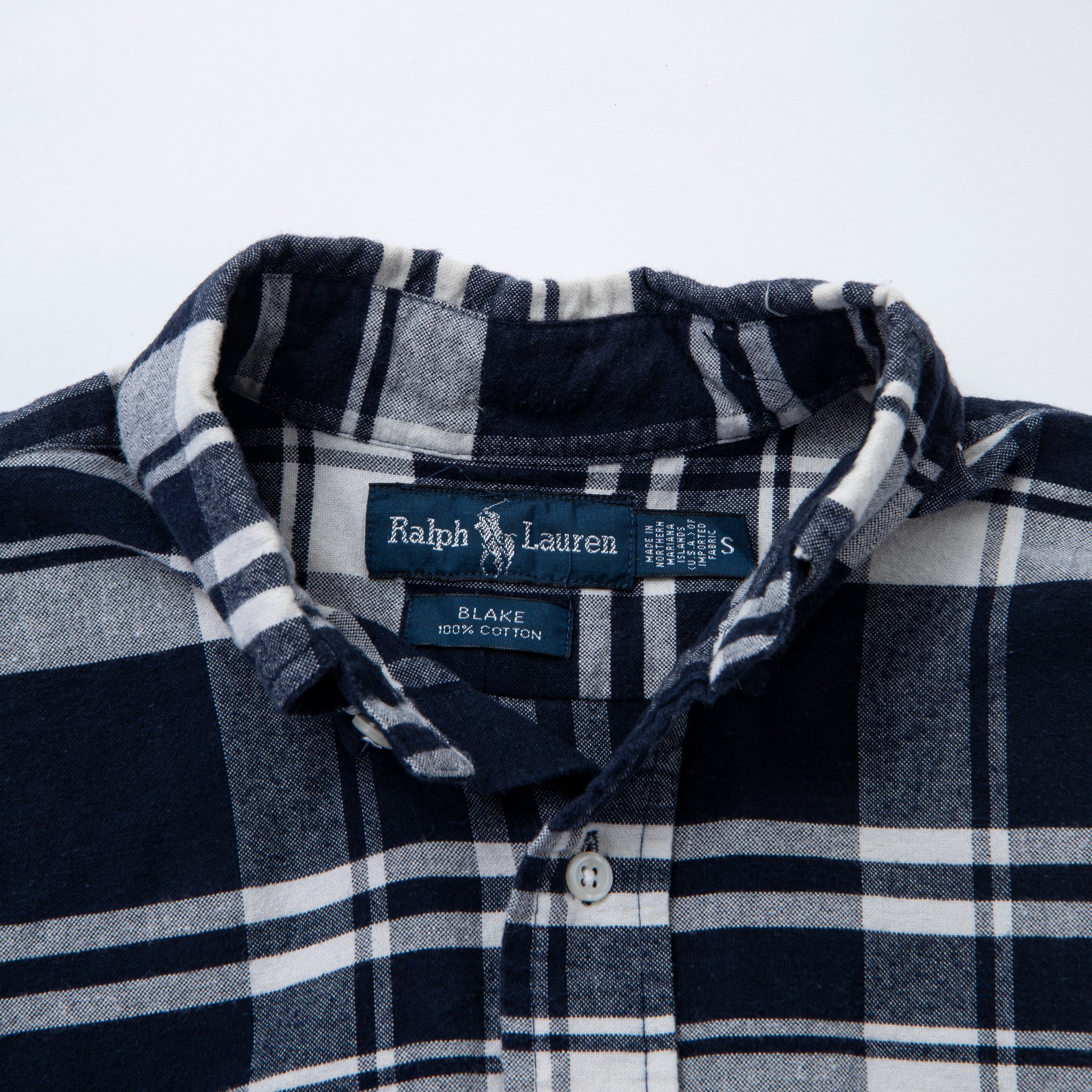 Ralph Laurenの定番ライン「BLAKE」シリーズの長袖チェックシャツ。1990年代後半〜2000年代前半にリリースされた本作は、ネイビー×ホワイトを基調としたクラシックな大柄チェック柄で、胸元には同系色のポニー刺繍入り。100%コットンの柔らかなフランネル生地を使用しており、着心地も抜群。シンプルながら存在感のあるデザインです。